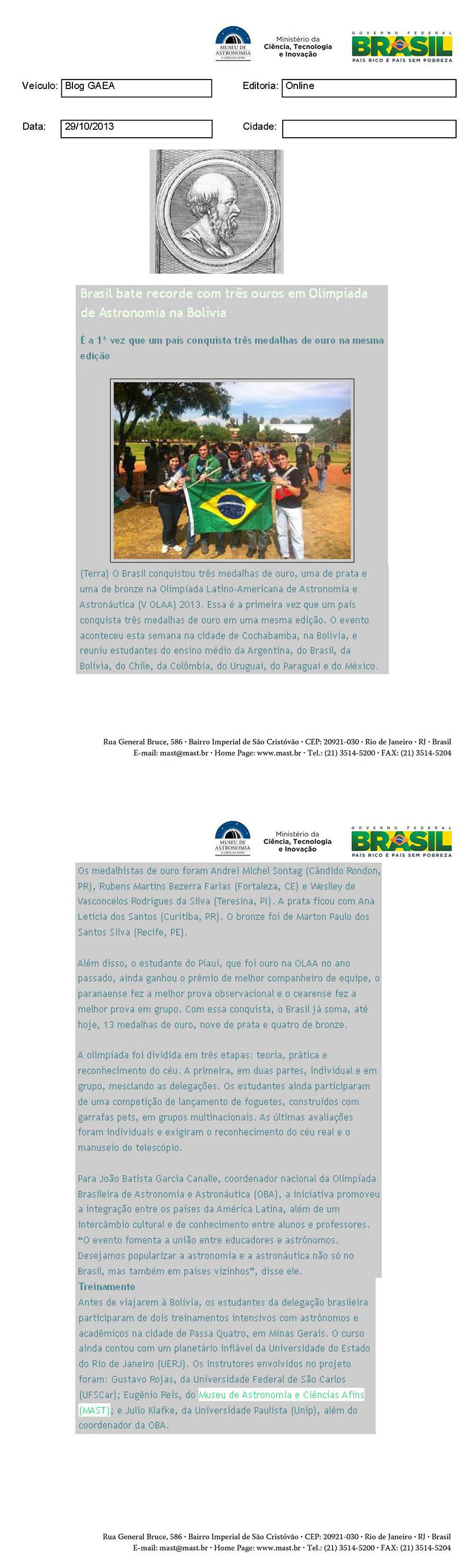 GAEA | Brasil bate recorde com três ouros em olimpíada de Astronomia na Bolívia