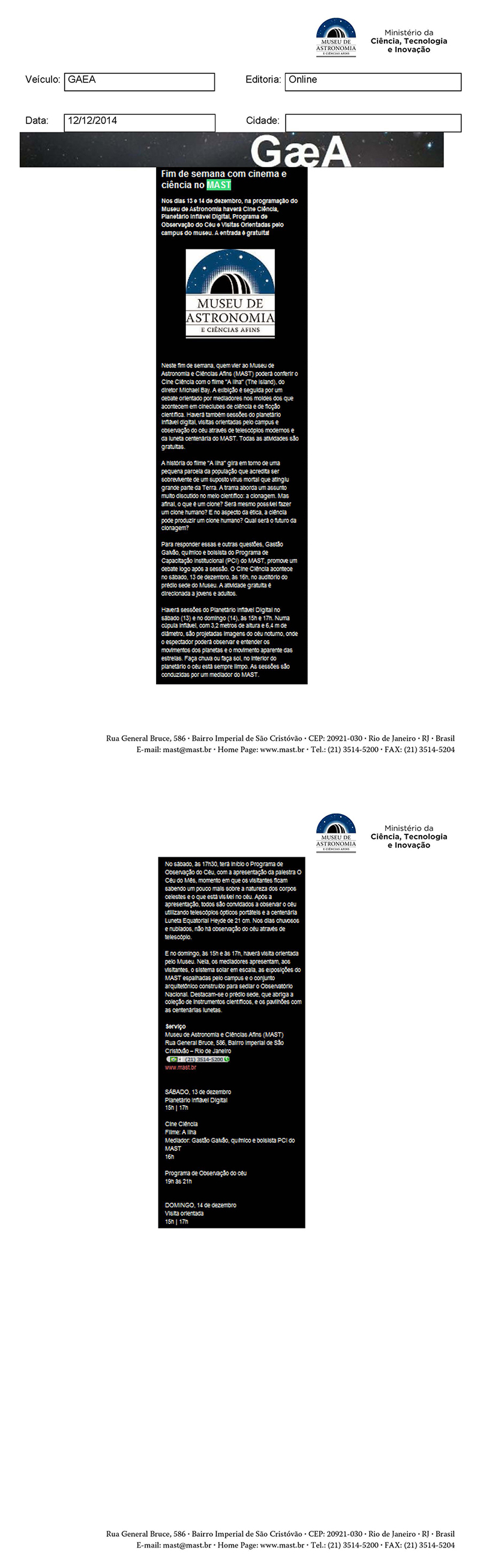 Museu de Astronomia e Ciências Afins - MAST