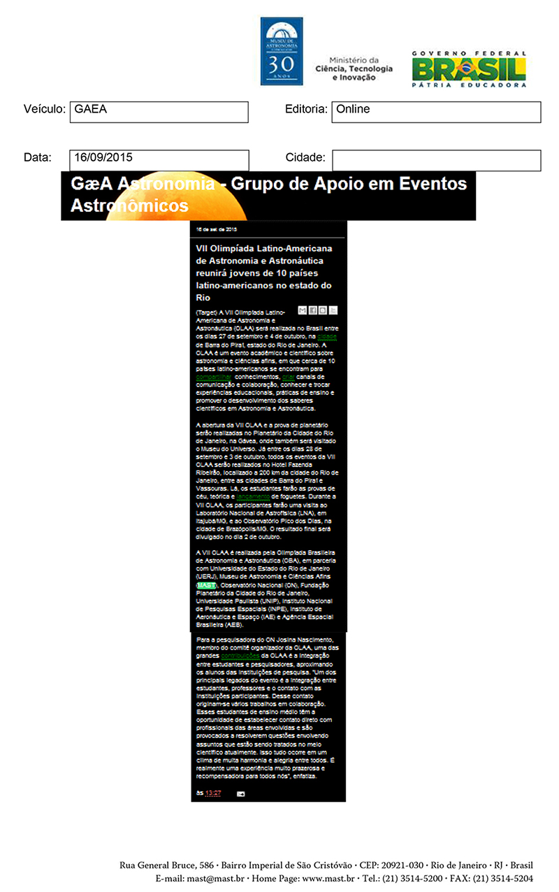 GAEA | GaeA Astronomia - Grupo de Apoio em Eventos Astronômicos