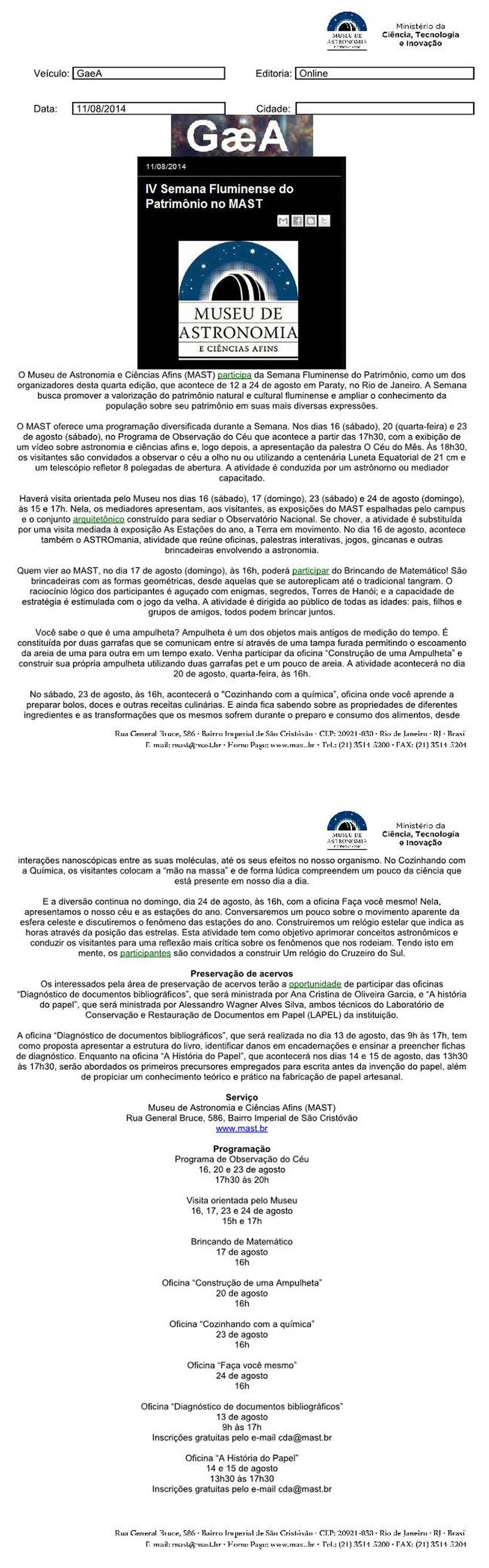 GAEA | IV Semana Fluminense do Patrimônio no MAST