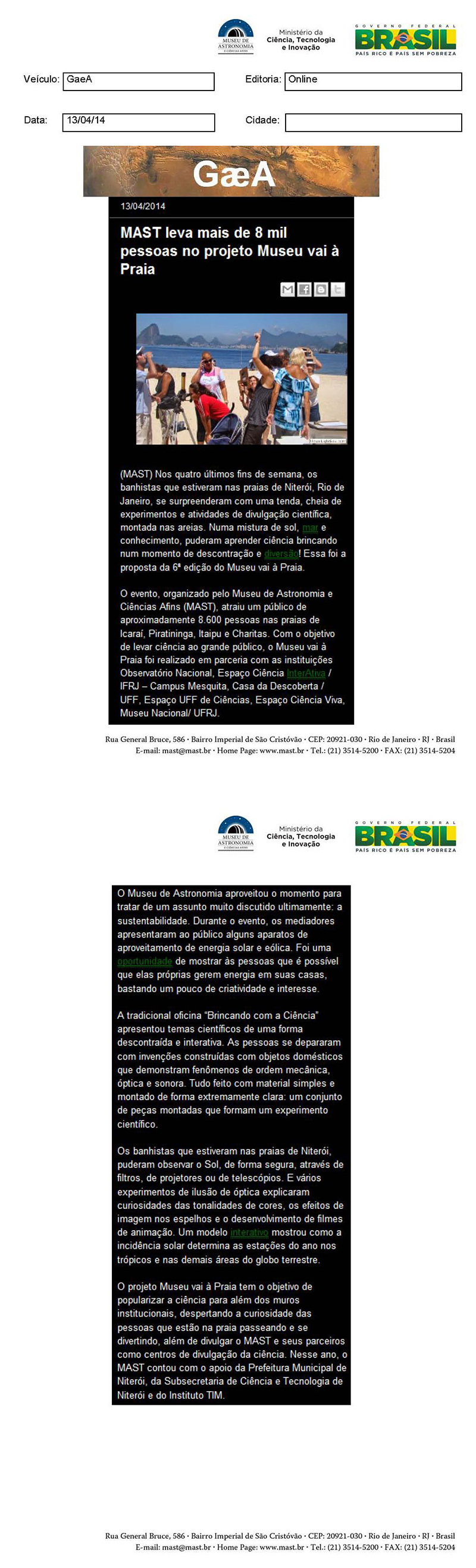 GAEA | MAST leva mais de 8 mil pessoas no projeto Museu Vai à Praia