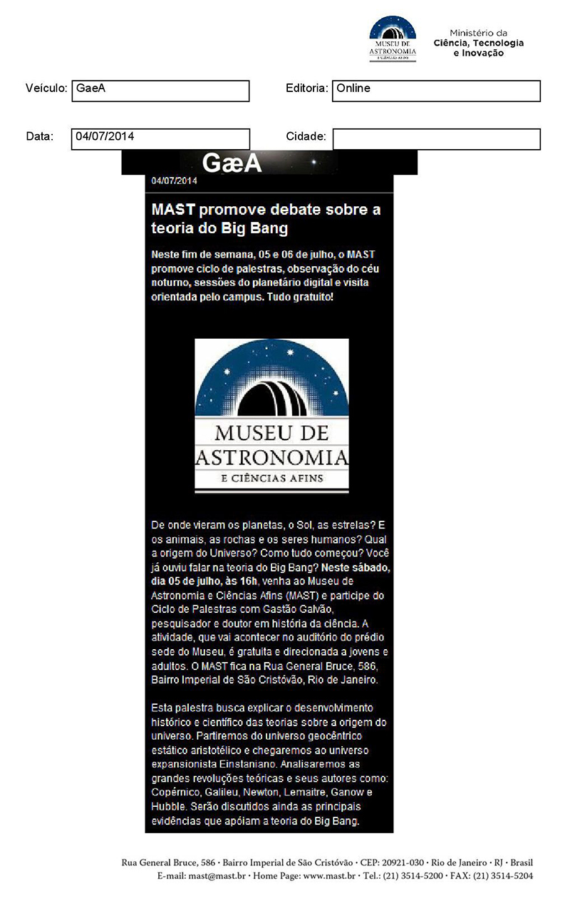 GAEA | MAST promove debate sobre a teoria do Big Bang