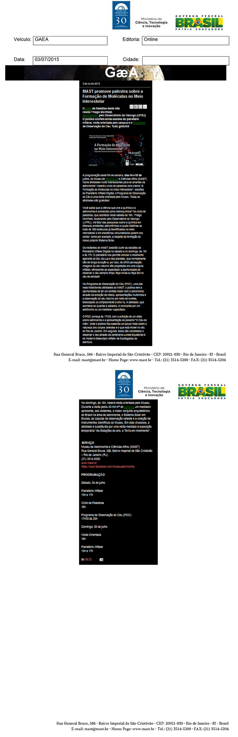 Museu de Astronomia e Ciências Afins - MAST