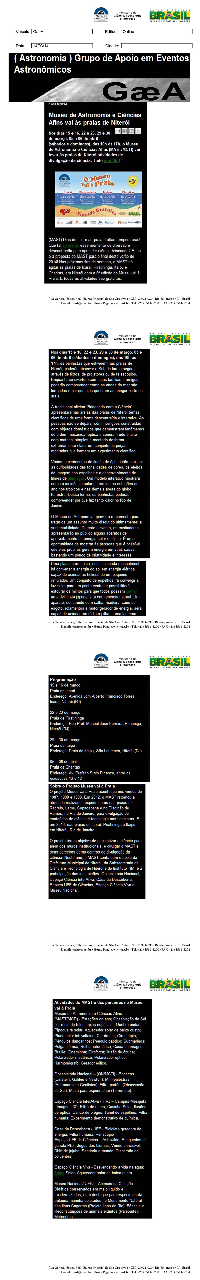 GAEA | Museu de Astronomia e Ciências Afins vai às praias de Niterói