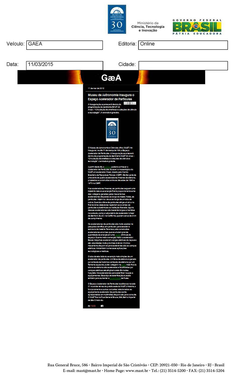 GAEA | Museu de Astronomia inaugura Espaço Acelerador de Partículas