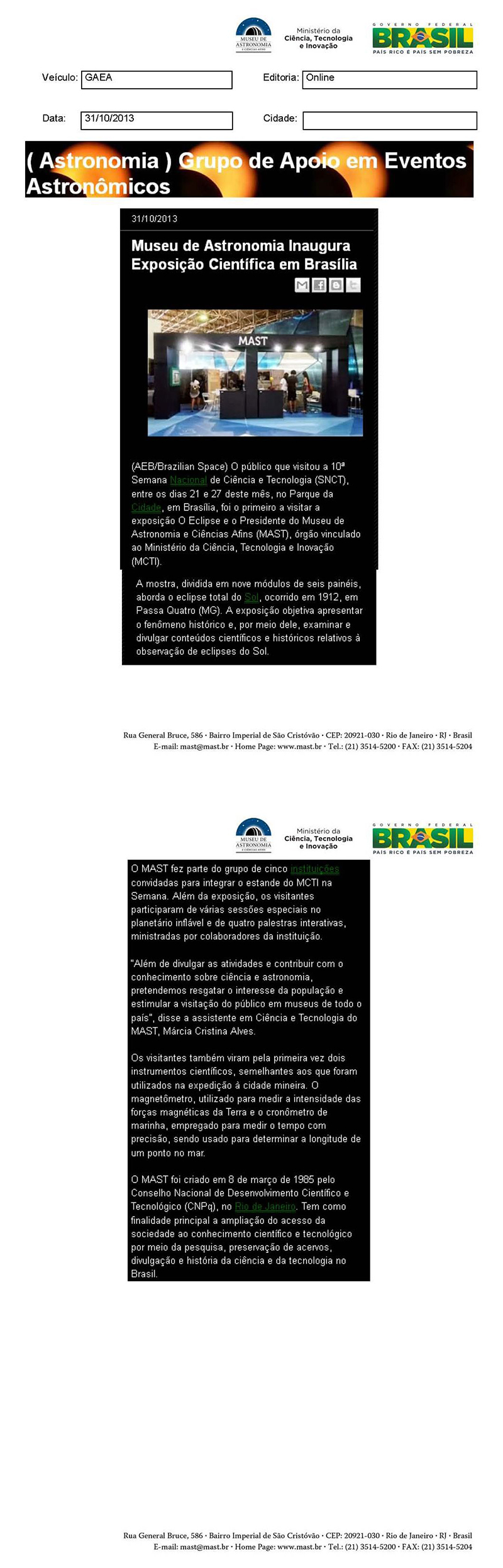 GAEA | Museu de Astronomia inaugura exposição científica em Brasília