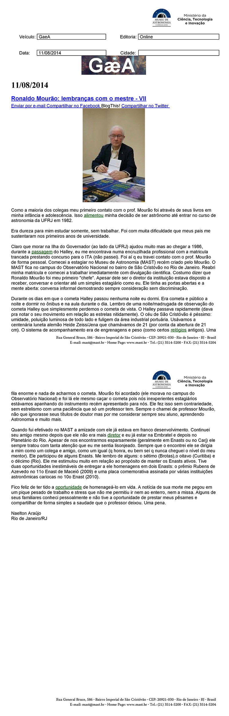 GAEA | Ronaldo Mourão: lembranças com o mestre - VII