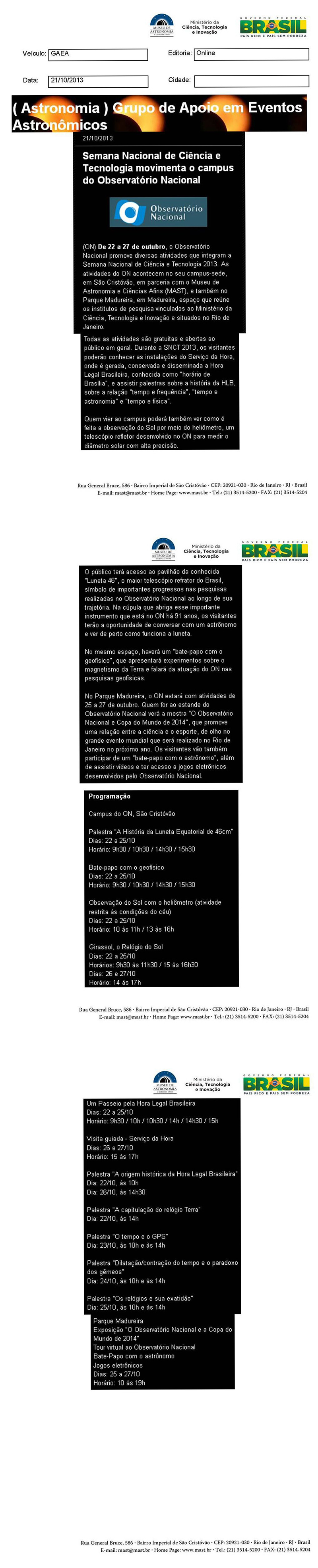 GAEA | Semana Nacional de Ciência e tecnologia movimenta o campus do Observatório Nacional