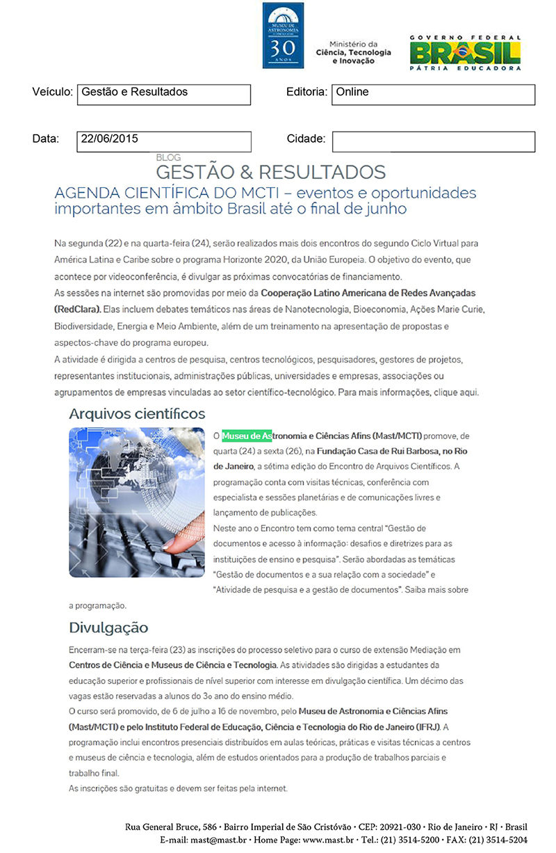 Gestão e Resultados | Eventos e oportunidades importantes em âmbito Brasil até o final de junho