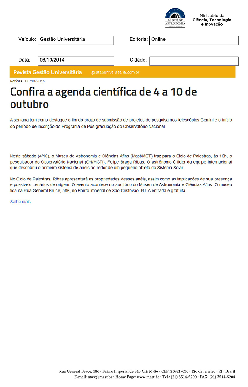 Gestão Universitária | Confira a agenda científica de 4 a 10 de outubro