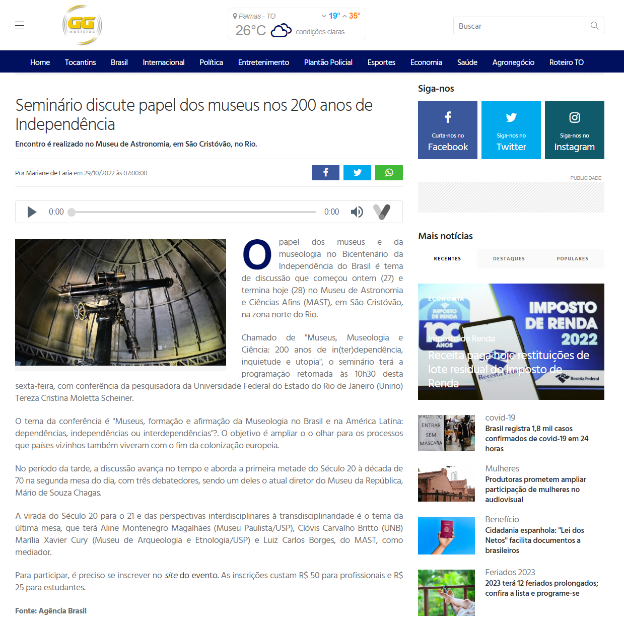 GG Notícias - Seminário discute papel dos museus nos 200 anos de Independência