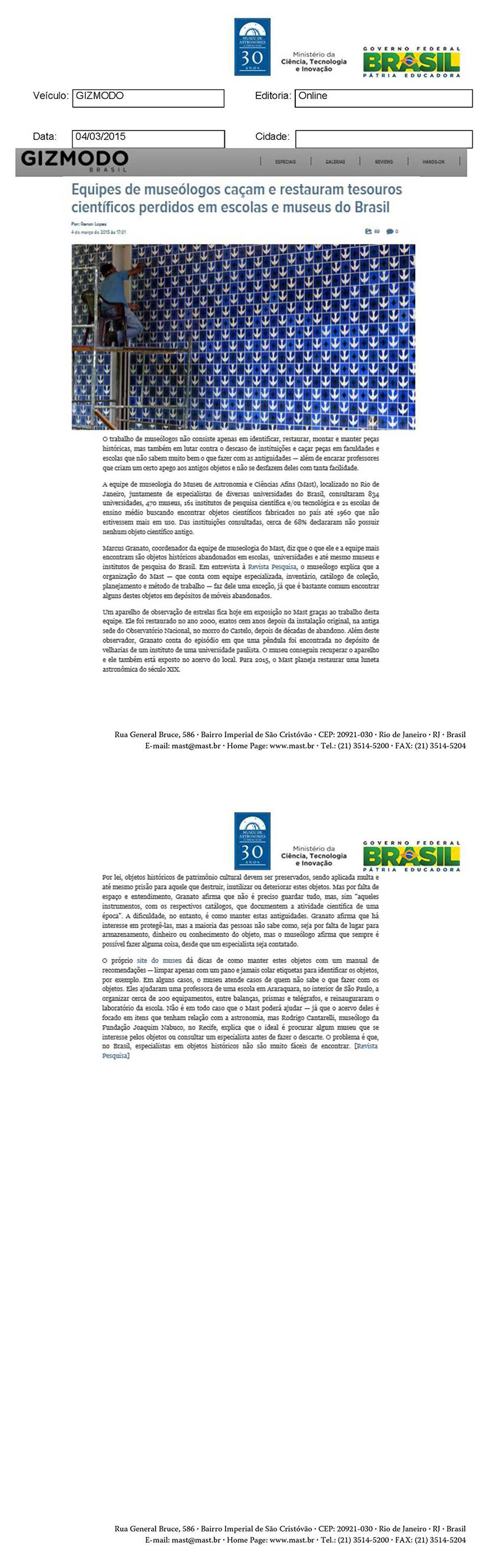 Gizmodo Brasil | Equipes de museólogos caçam e restauram tesouros científicos perdidos em escolas e museus do Brasil