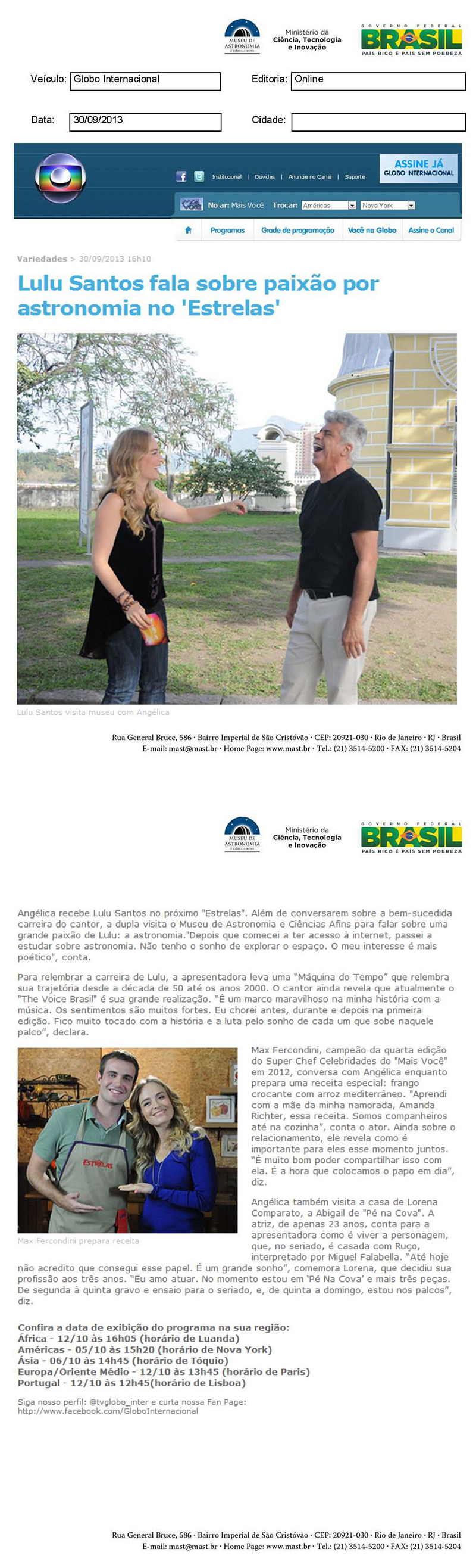 Globo Internacional | Lulu Santos fala sobre paixão por astronomia no 'Estrelas'