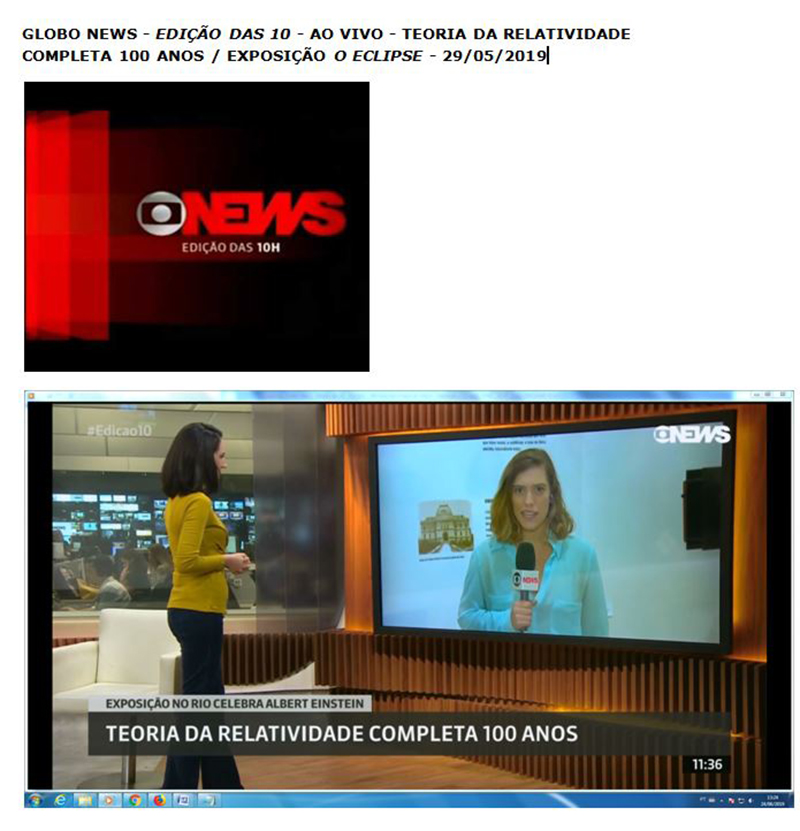 Globo News | Edição das 10 - Ao Vivo - Teoria da Relatividade completa 100 anos - Exposição O Eclipse