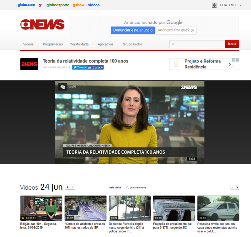 GloboNews | Edição das 10 - Teoria da relatividade completa 100 anos / Exposição O Eclipse