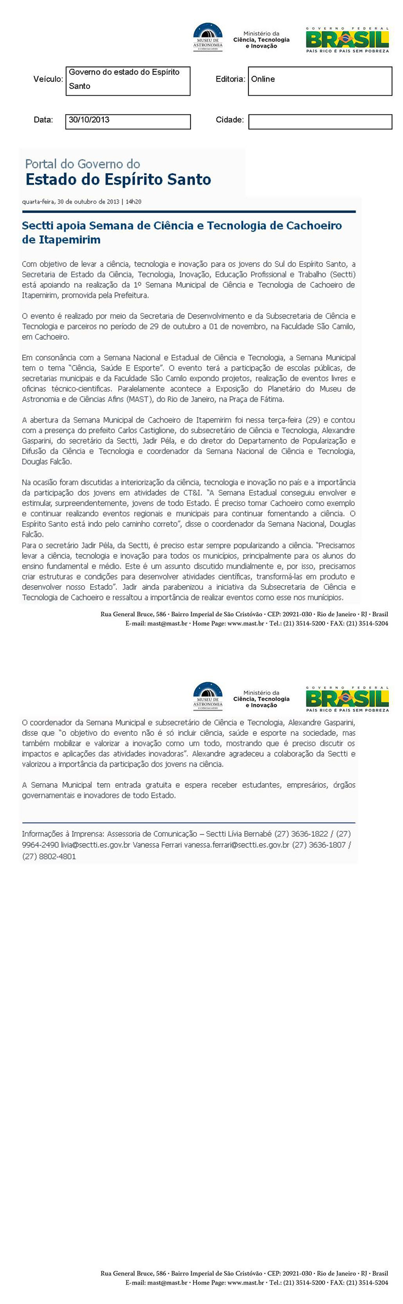 Governo do Estado do Espírito Santo | Sectti apoia Semana de Ciência e Tecnologia de Cachoeiro de Itapemirim