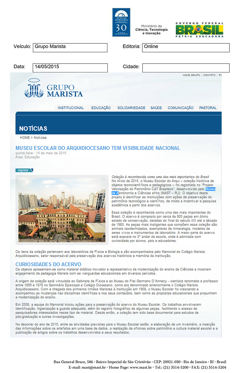 Grupo Marista | Museu escolar do Arquidiocesano tem visibilidade nacional