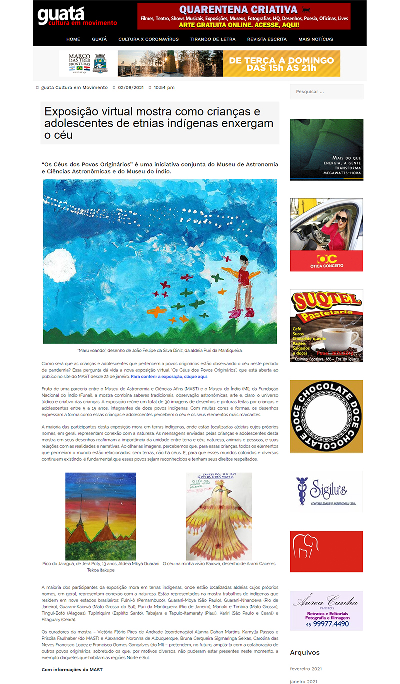 Guatá Cultura em Movimento (Foz do Iguaçu - PR) | MAST e Museu do Índio lançam mostra virtual 'Os Céus dos Povos Originários'