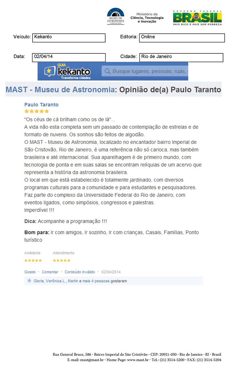 Guia Kekanto | MAST - Museu de Astronomia