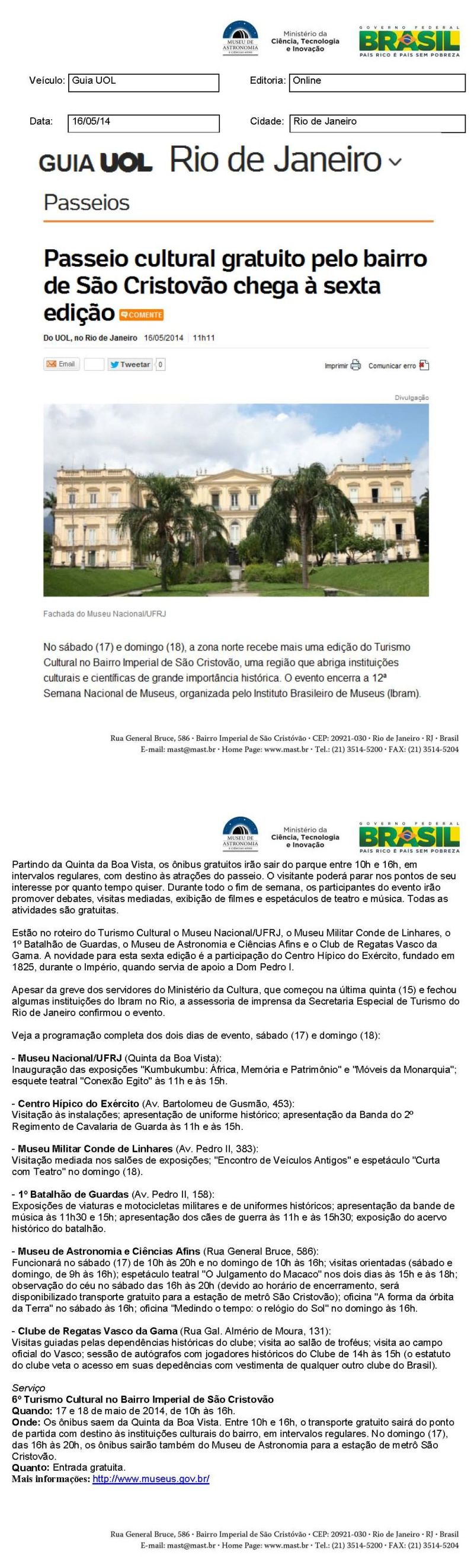 Guia UOL | Passeio cultural gratuito pelo bairro de São Cristóvão chega a sexta edição