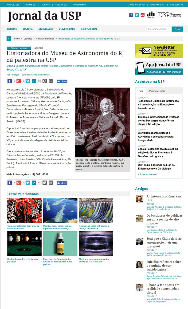 Jornal da USP | Historiadora do Museu de Astronomia do RJ dá palestra na USP