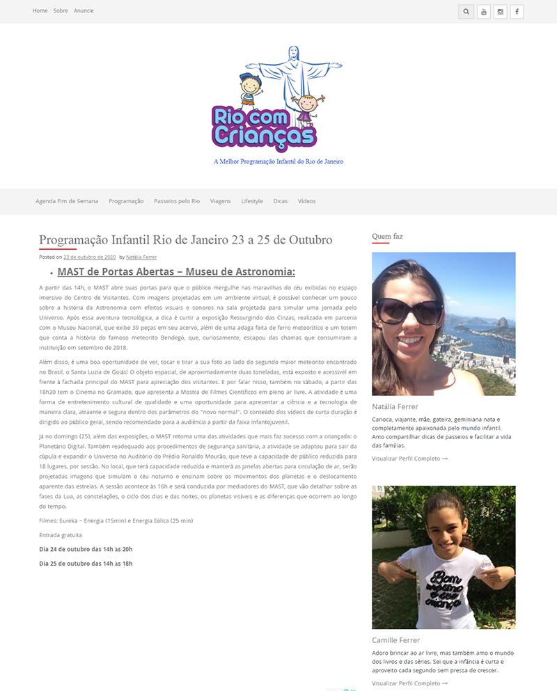 Rio Com Crianças | Programação infantil Rio de Janeiro - 23 a 25 de Outubro