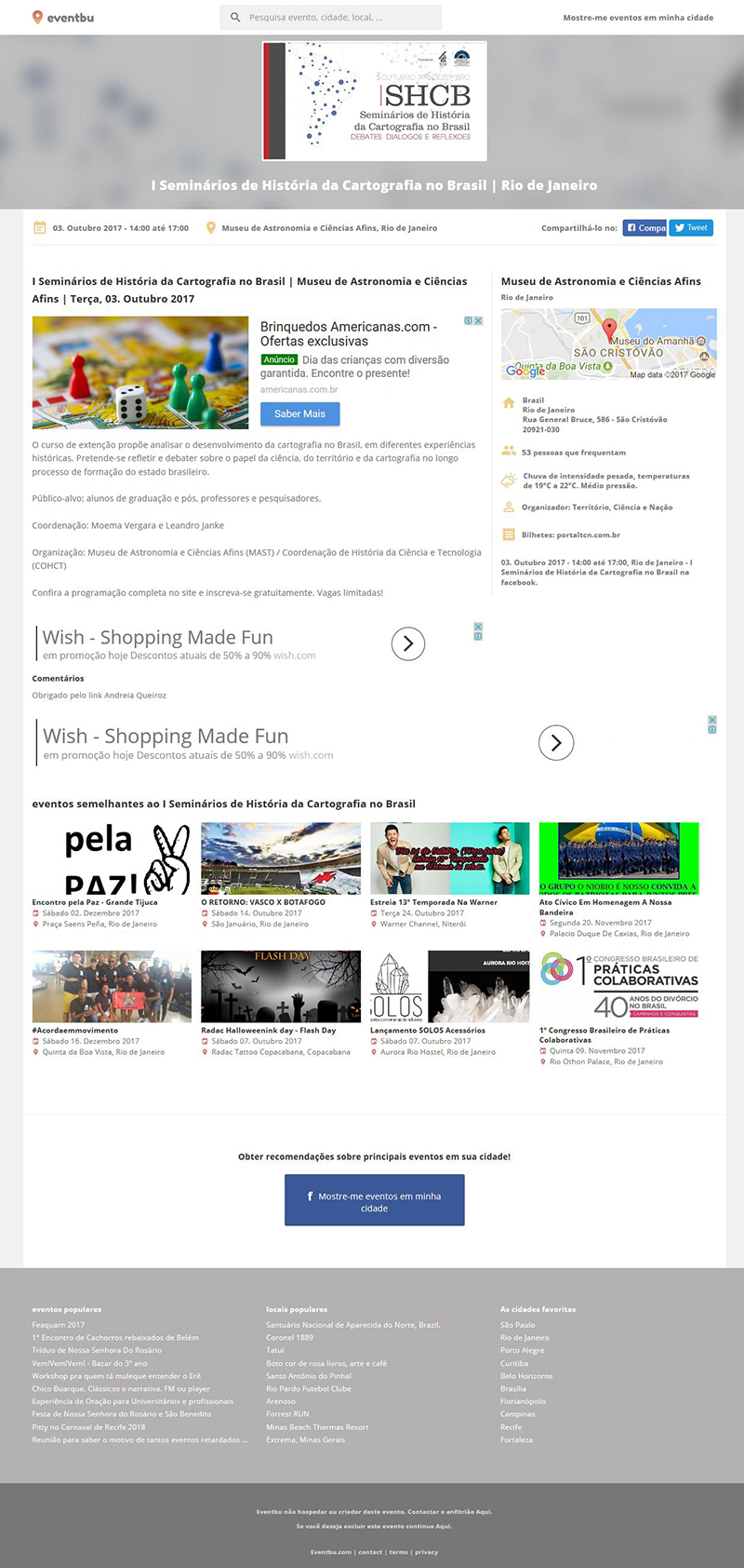 Site Eventbu | I Seminário de História da Cartografia no Brasil | Rio de Janeiro