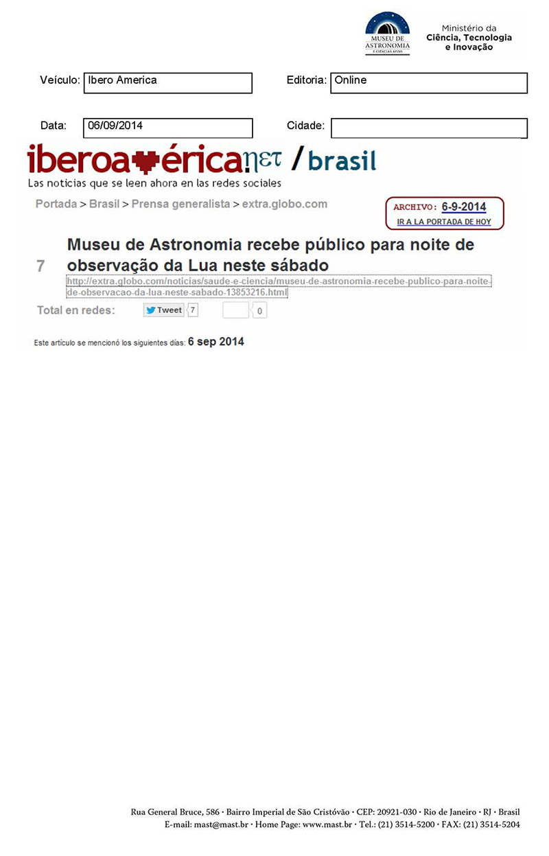 Ibero América.net | Museu de Astronomia recebe público para noite de observação da Lua neste sábado