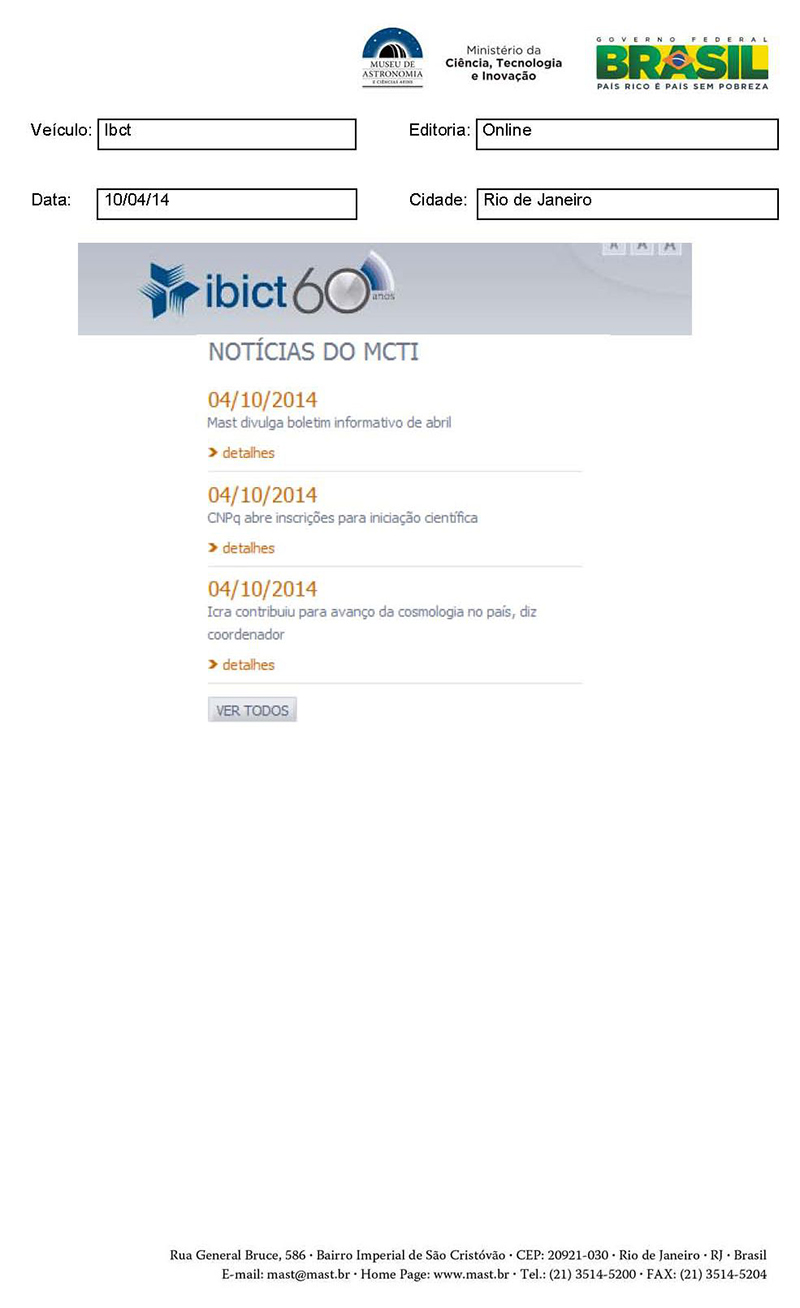 Ibict | MAST divulga boletim informativo de abril