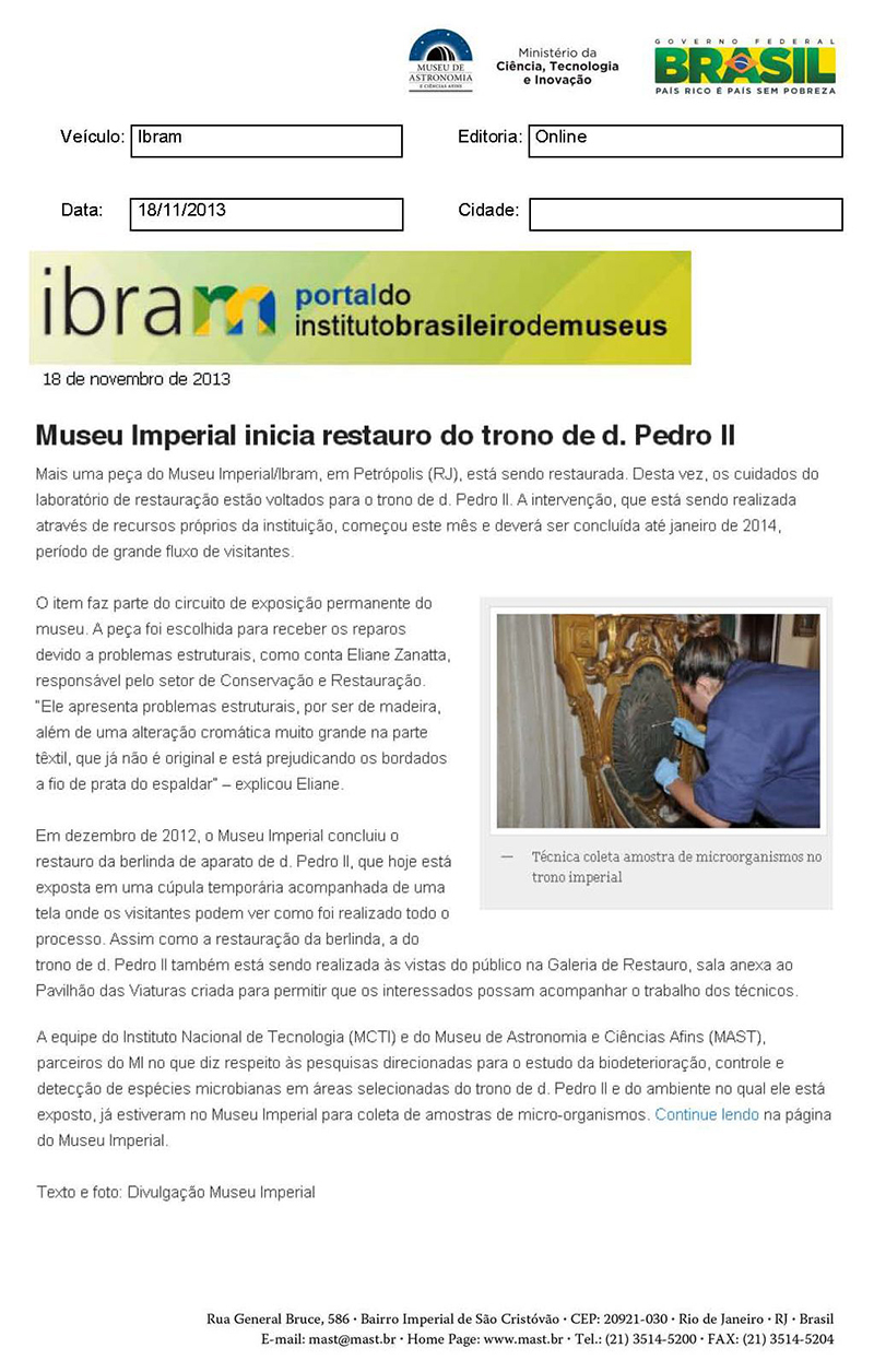IBRAM | Museu Imperial inicia restauro do trono de D. Pedro II