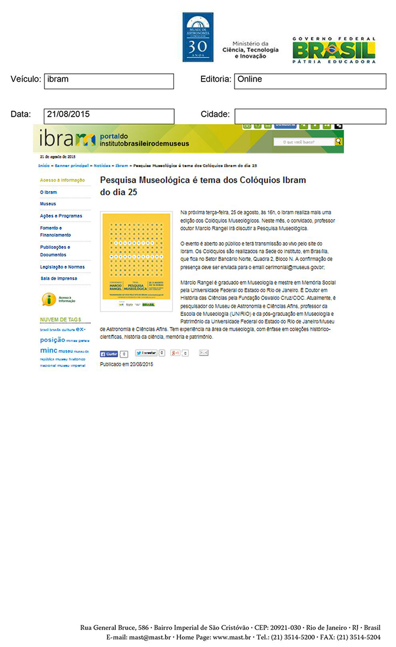 IBRAM | Pesquisa Museológica é tema dos Collóquios Ibram do dia 25