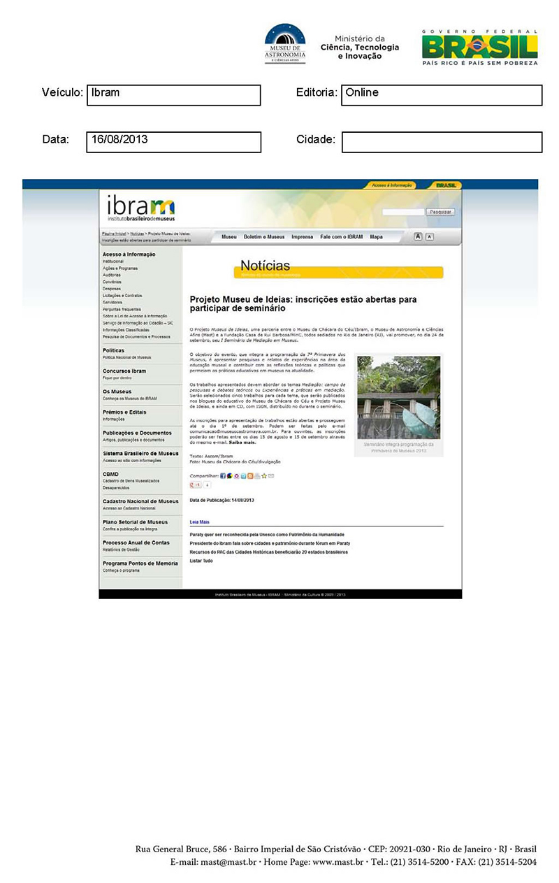 IBRAM | Projeto Museu de Ideias: Inscrições estão abertas para participar de seminário