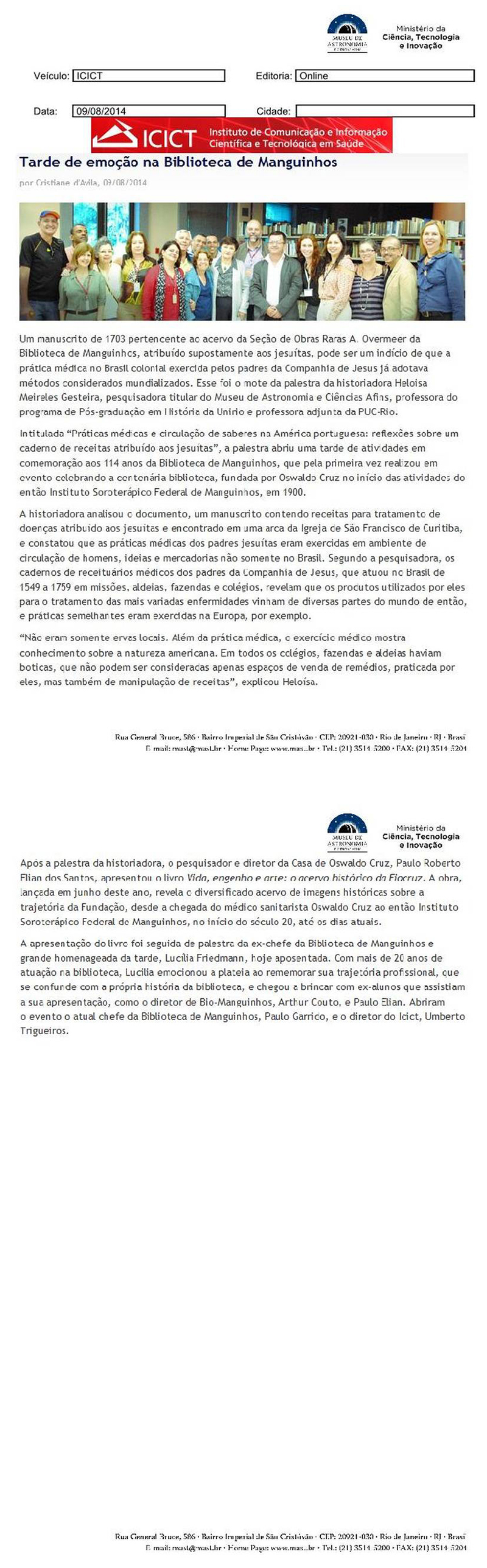 ICICT | Tarde de emoção na Biblioteca de Manguinhos