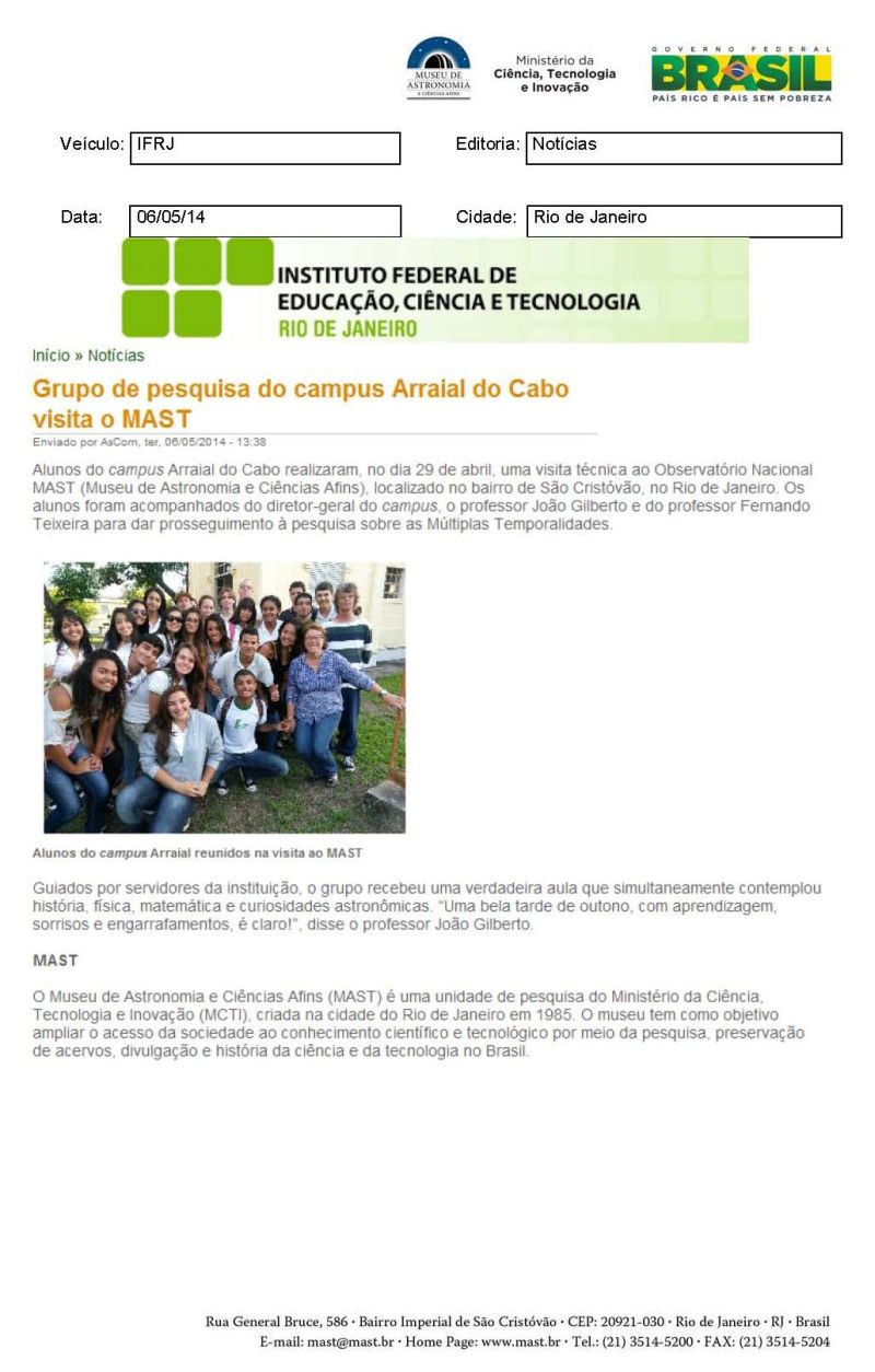 IFRJ | Grupo de pesquisa do campus Arraial do Cabo visita o MAST