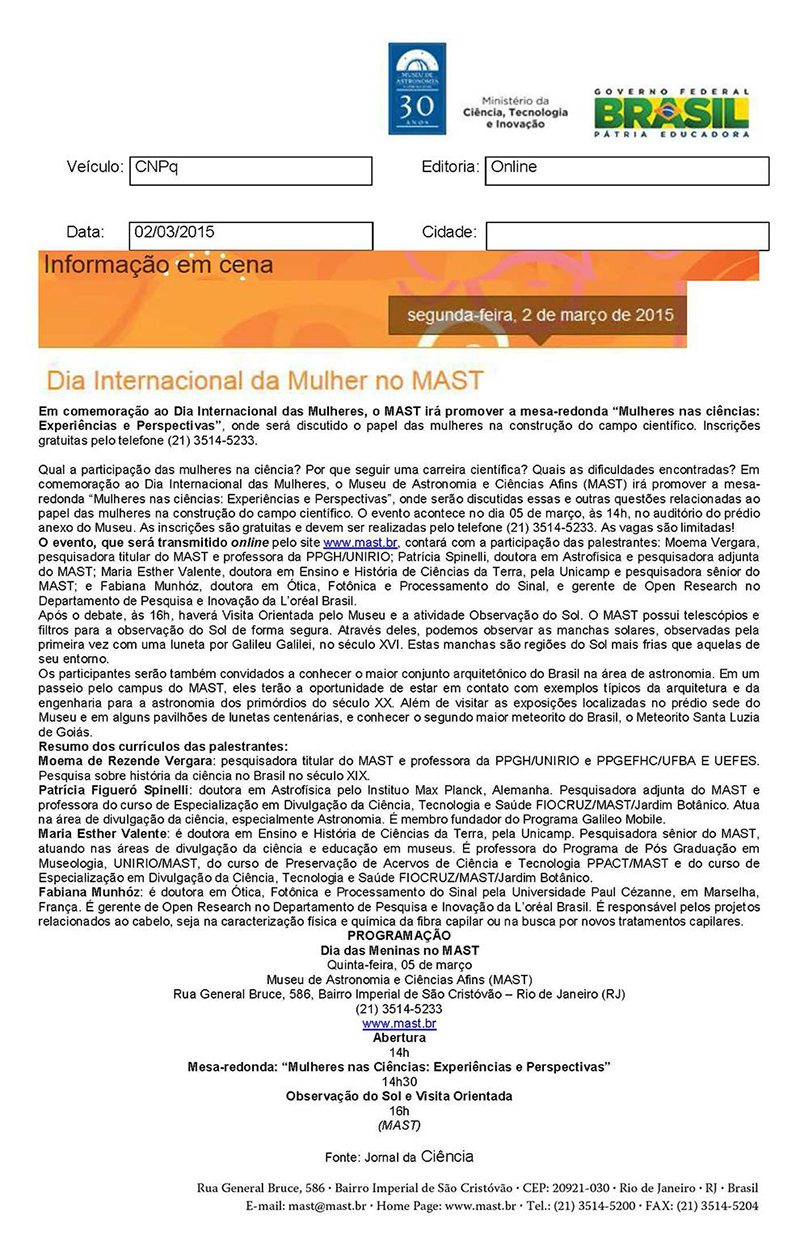 Informação em Cena | Dia Internacional da Mulher no MAST