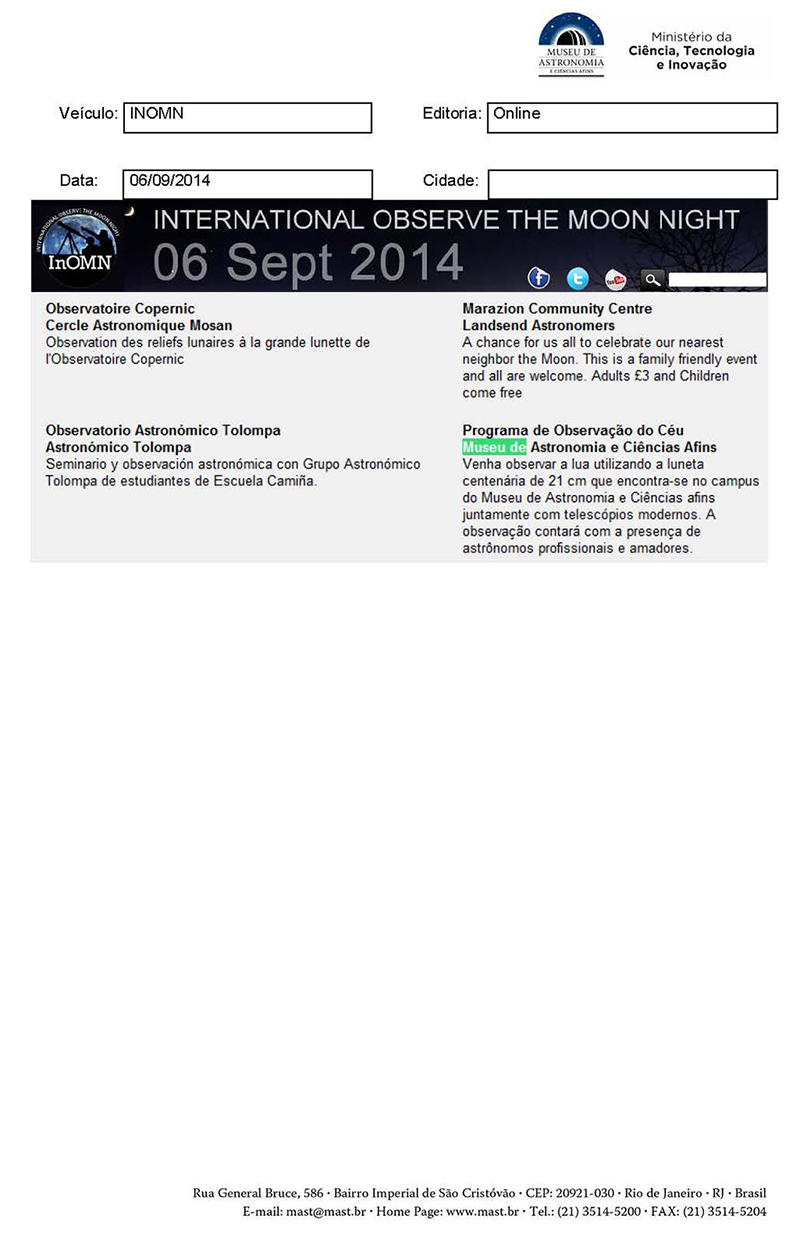 INOMN | Programa de Observação do Céu no Museu de Astronomia e Ciências Afins