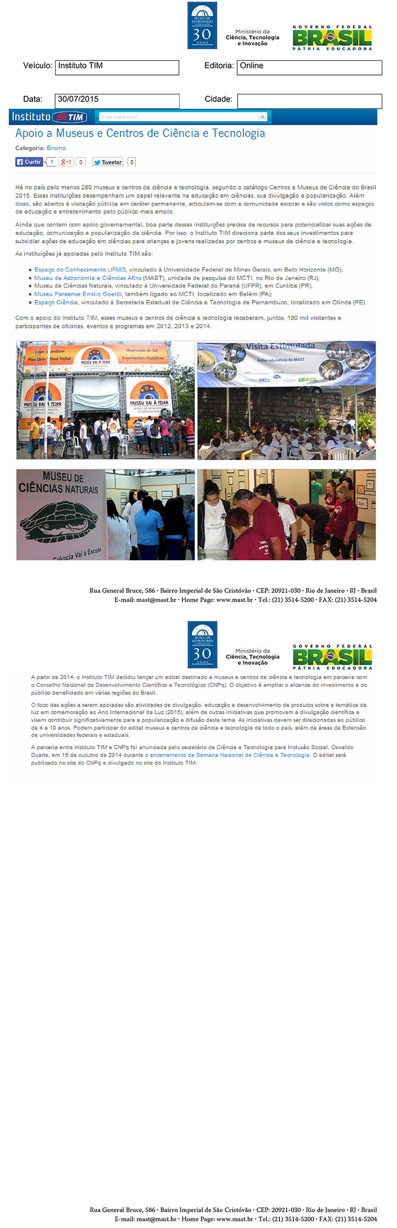 Instituto TIM | Apoio a Museus e Centros de Ciência e Tecnologia