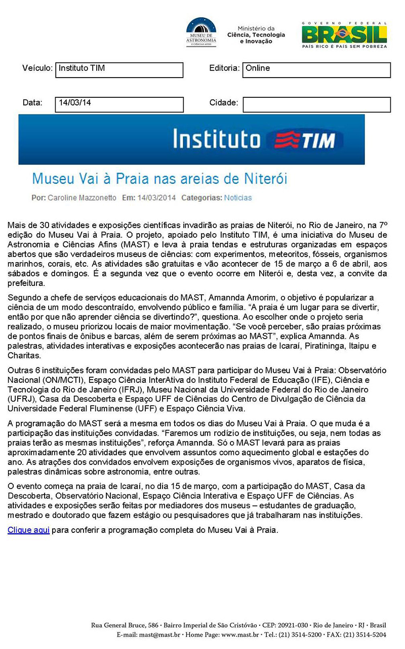 Instituto TIM | Museu vai à Praia nas areias de Niterói