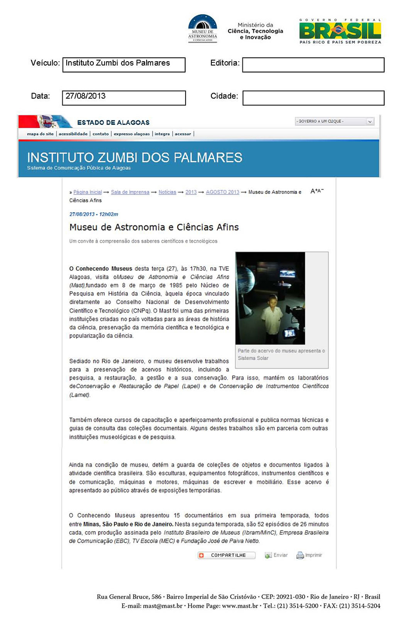 Instituto Zumbi dos Palmares | Museu de Astronomia e Ciências Afins