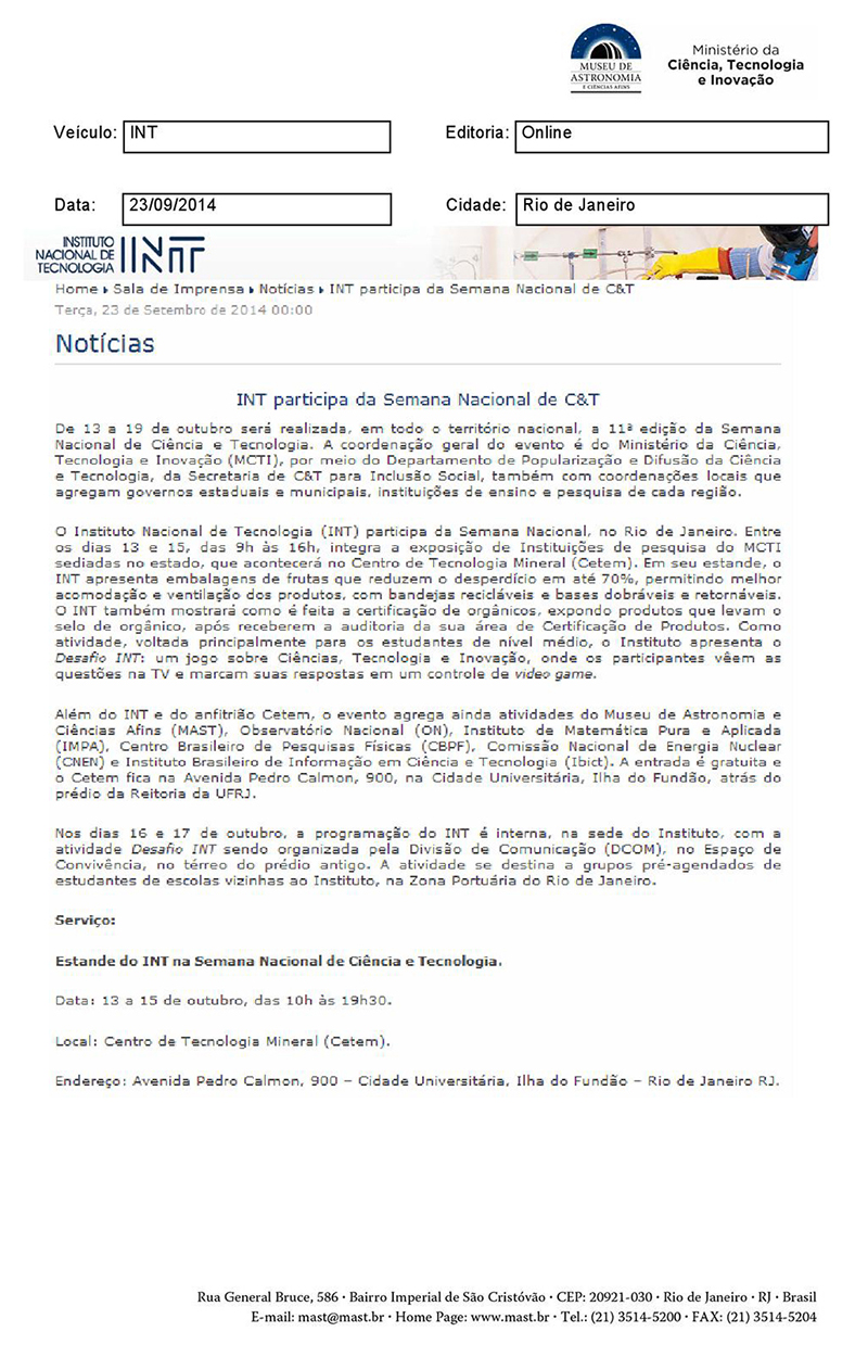 INT | INT participa da Semana Nacional de C&T