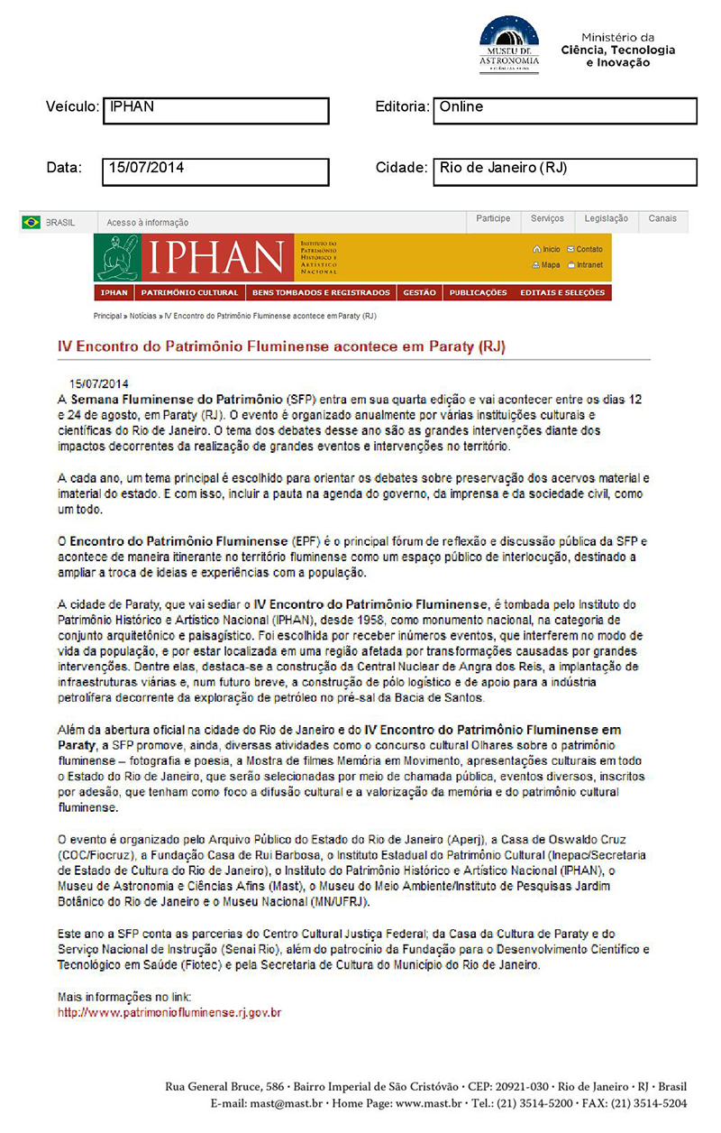 IPHAN | IV Encontro do Patrimônio Fluminense acontece em Paraty (RJ)