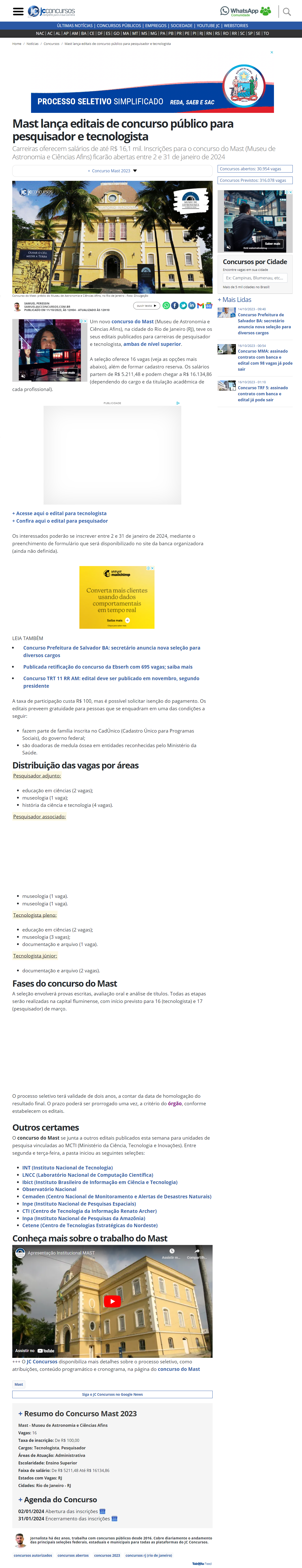 JC Concursos - Mast lança editais de concurso público para pesquisador e tecnologista