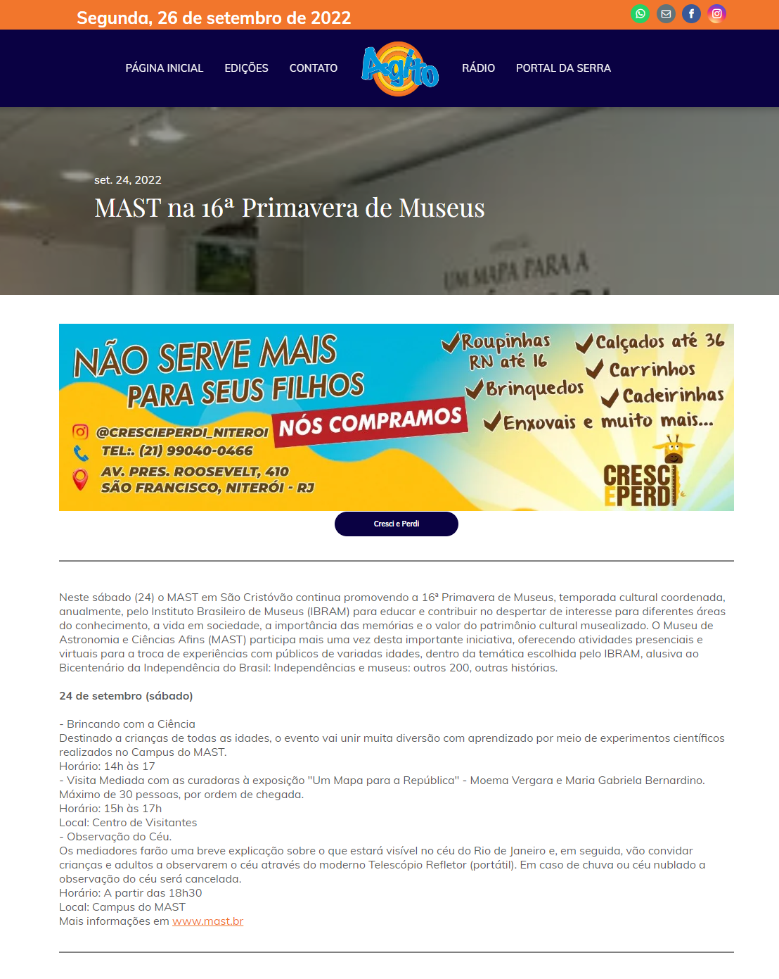 Jornal Agito (Niterói) - MAST na 16ª Primavera de Museus