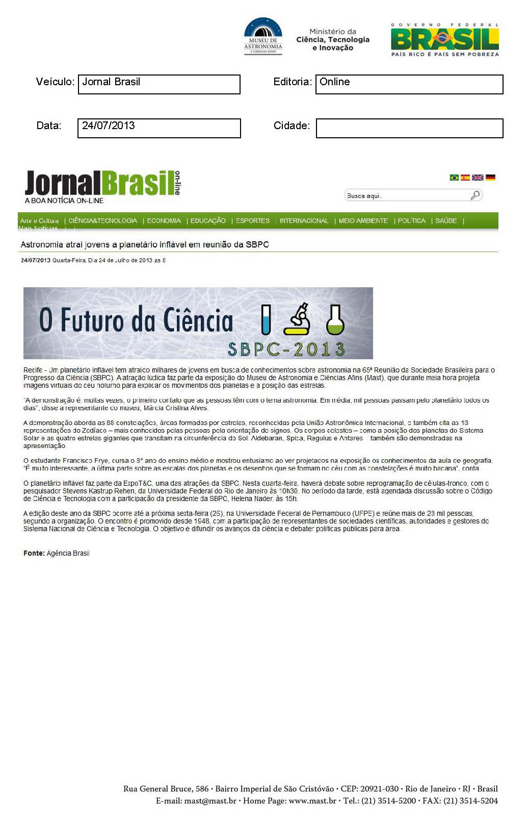 Jornal Brasil | Astronomia atrai jovens e planetário inflável em reunião da SBPC