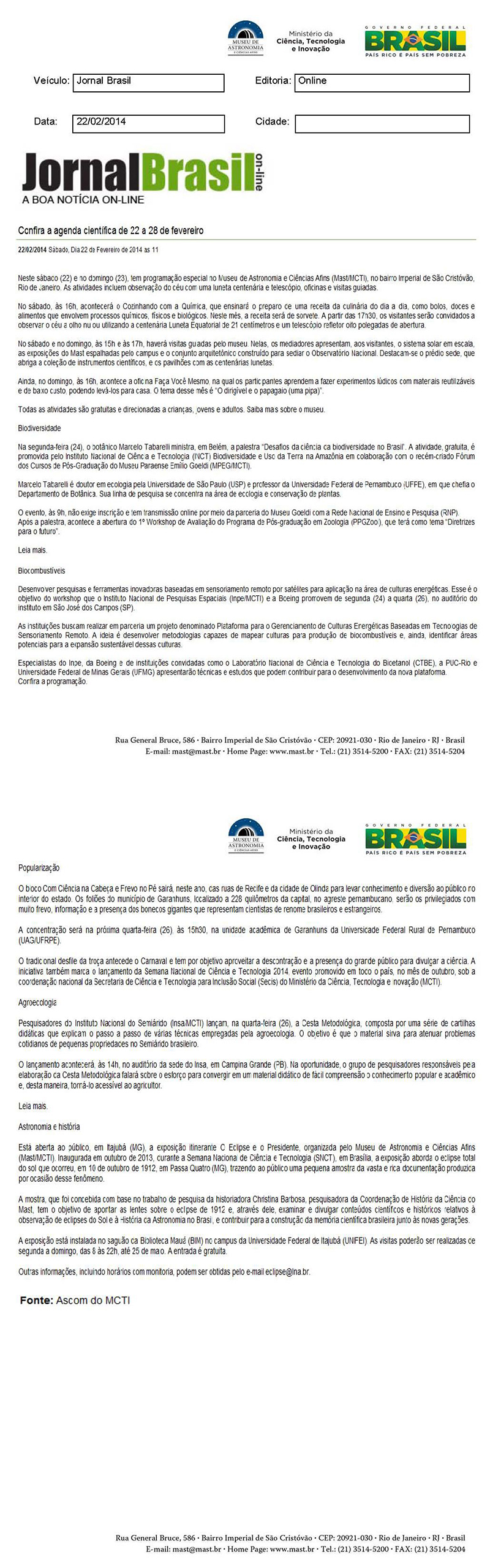 Jornal Brasil | Confira a agenda científica de 22 a 28 de fevereiro
