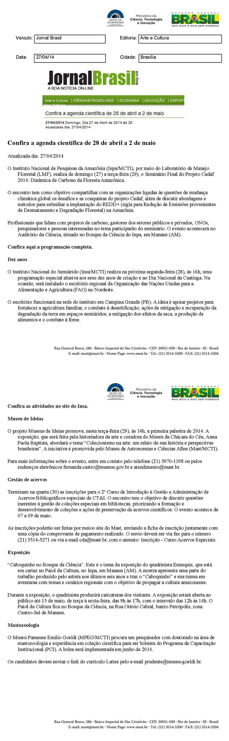 Jornal Brasil | Confira a agenda científica de 26 de abril a 2 de maio