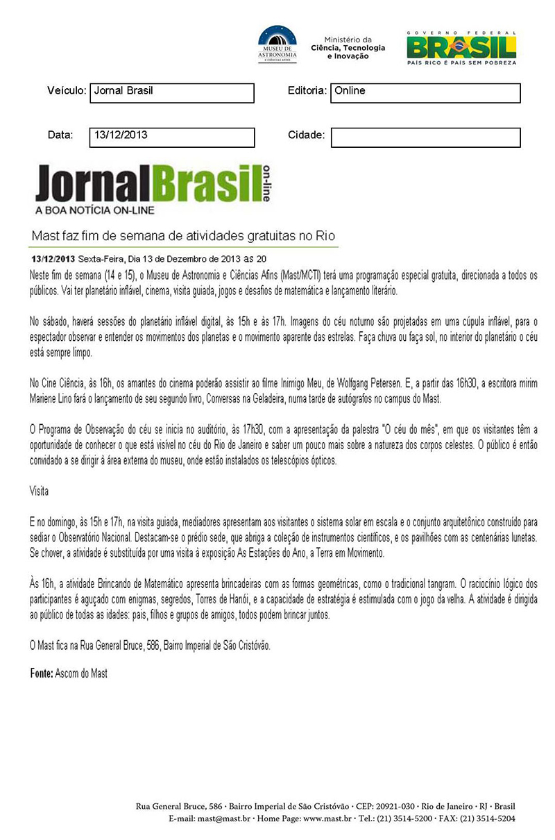 Jornal Brasil | MAST faz fim de semana de atividades grátis no Rio