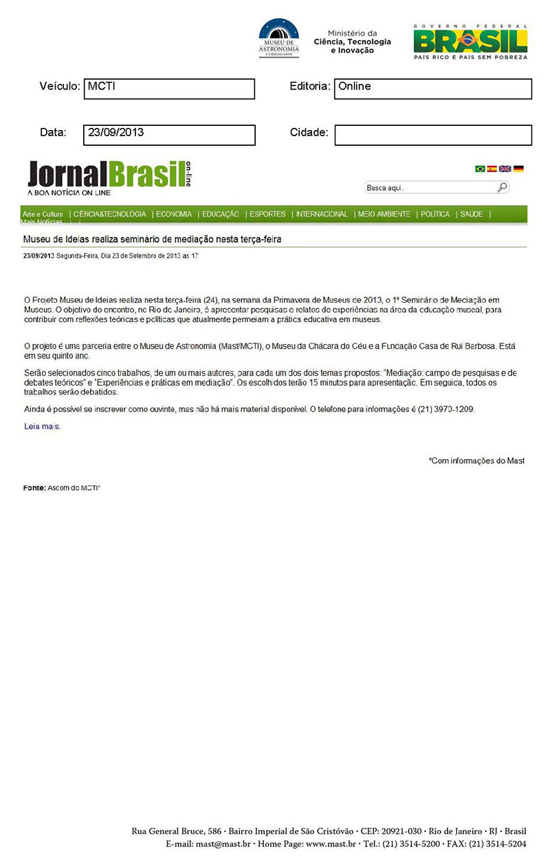 Jornal Brasil | Museu de Ideias realiza seminário de mediação nesta terça-feira