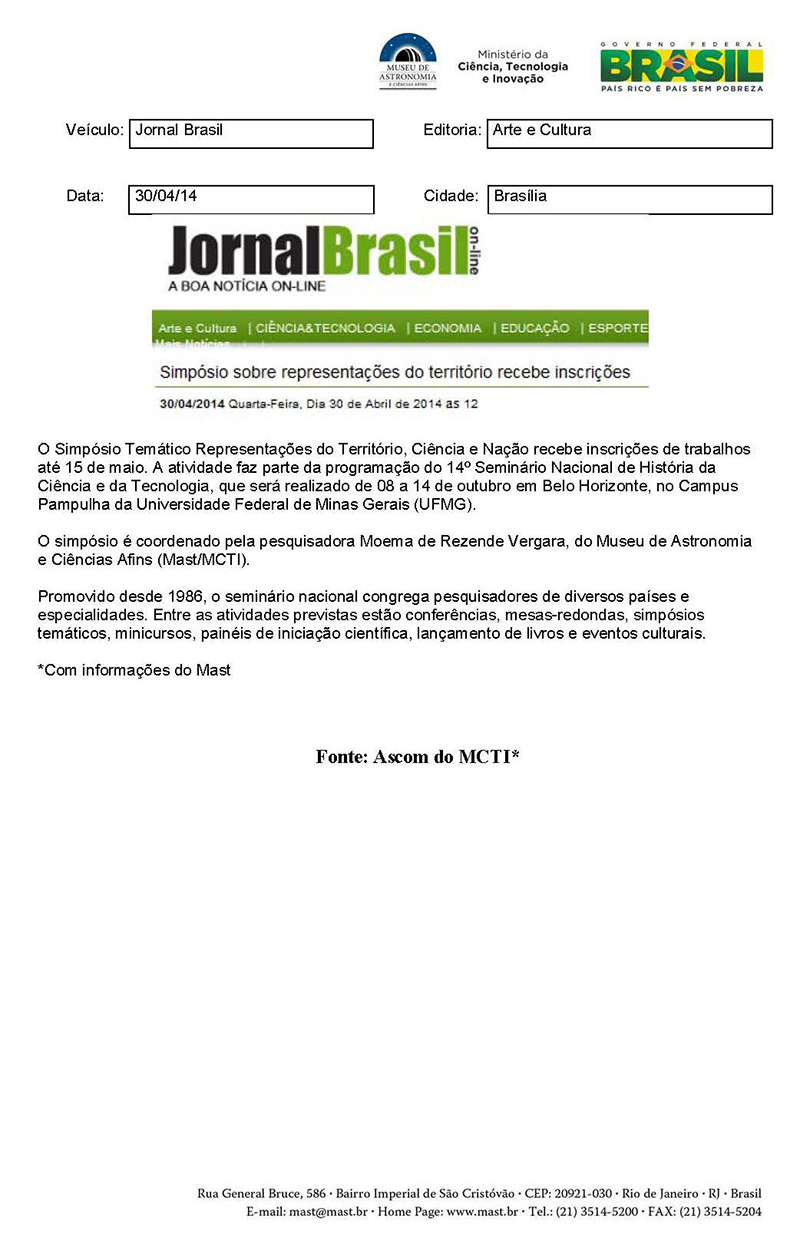 Jornal Brasil | Simpósio sobre representações do território recebe inscrições