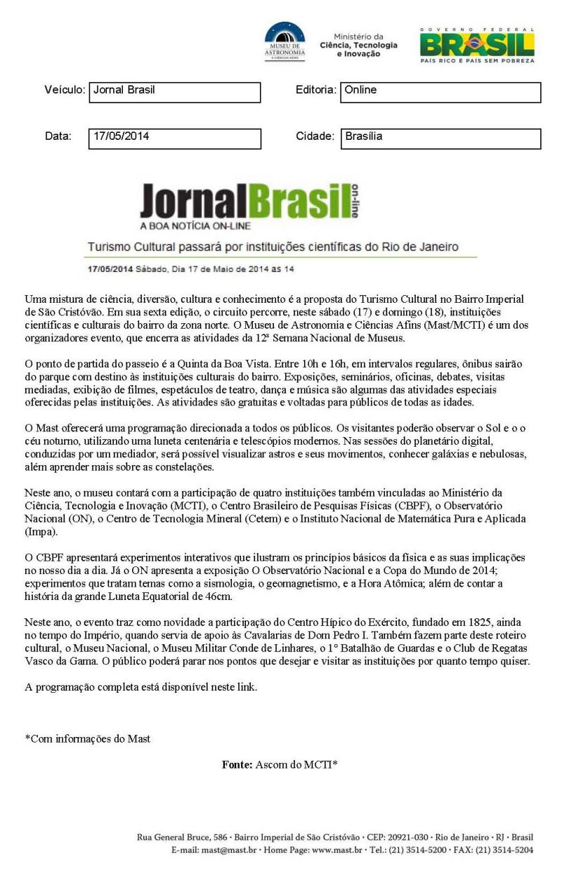 Jornal Brasil | Turismo Cultural passará por instituições científicas do Rio de Janeiro